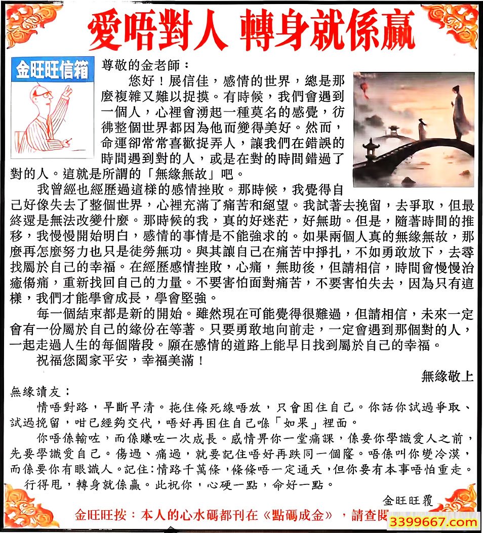 | 主题 :105期:金旺旺信箱彩民推荐→→《愛唔對人 轉身就係贏》 |