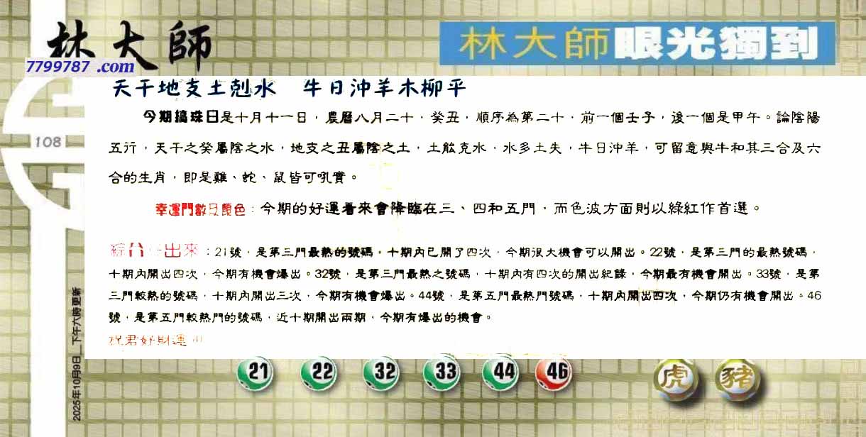 | 主题 :108期:六合皇金句/老总论码/萧公子/林大师/五行夺码/老总信箱截 |