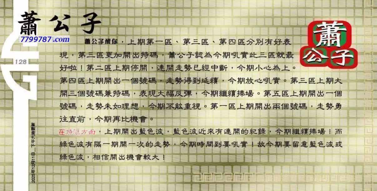 | 主题 :128期:六合皇金句/老总论码/萧公子/林大师/五行夺码/老总信箱截 |