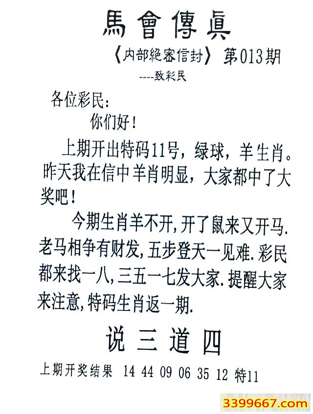 013期:首发推荐:≮馬會傳眞≯→(香港正版)