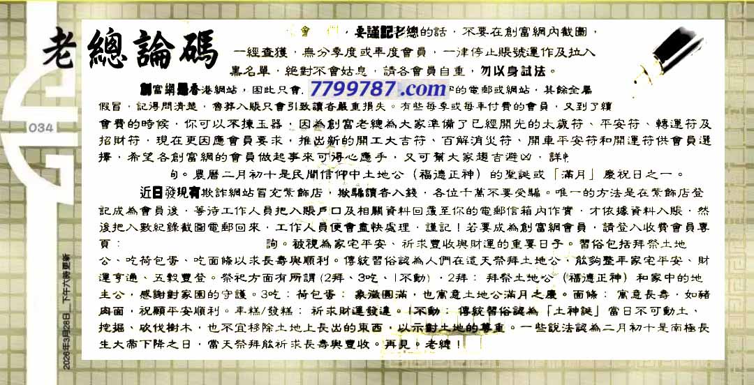 主题 : 034期:六合皇金句/老总论码/萧公子/林大师/五行夺码/老总信箱截图