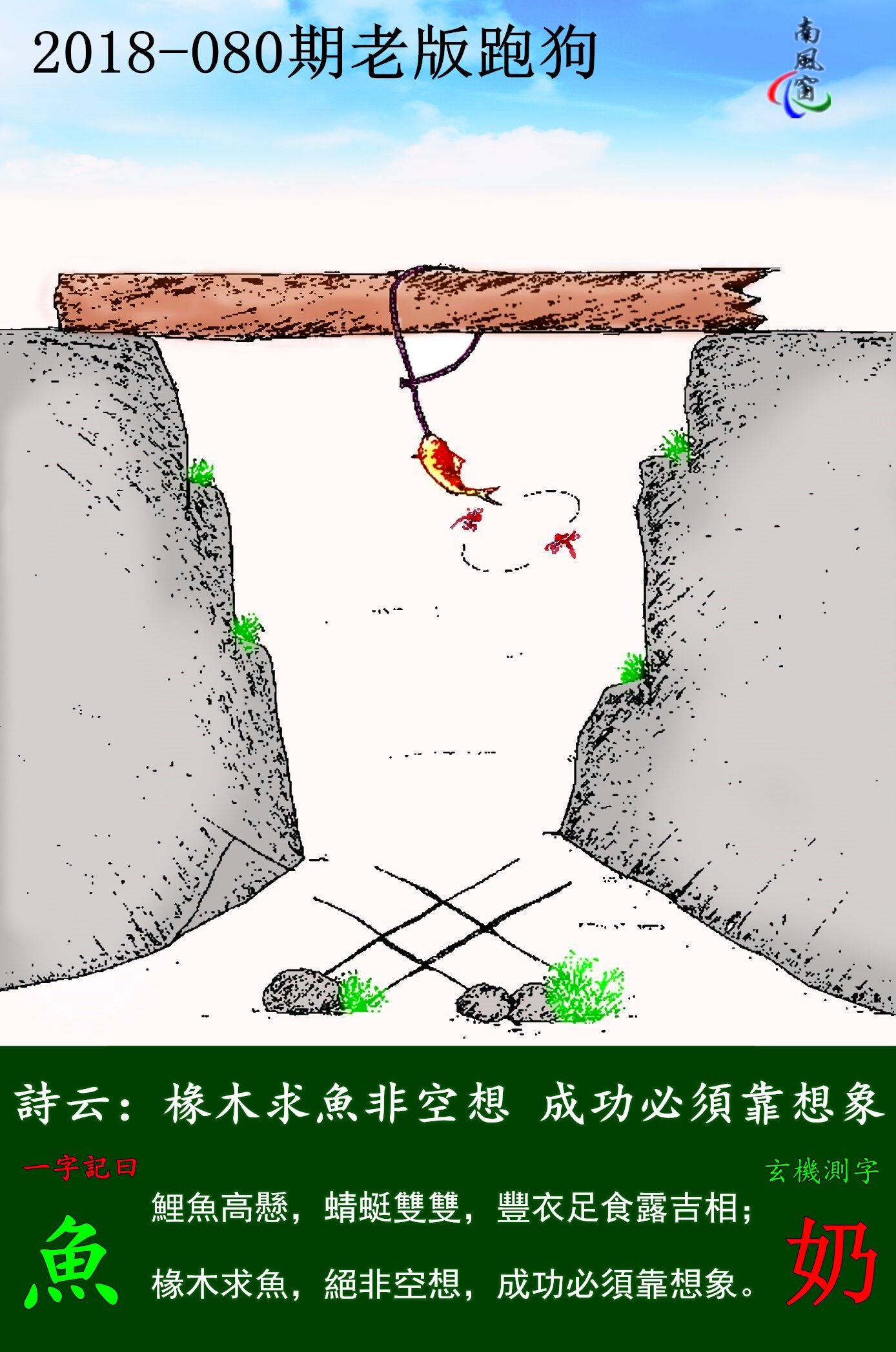 080期:老版跑狗一字記之曰:【魚】玄機測字《奶》