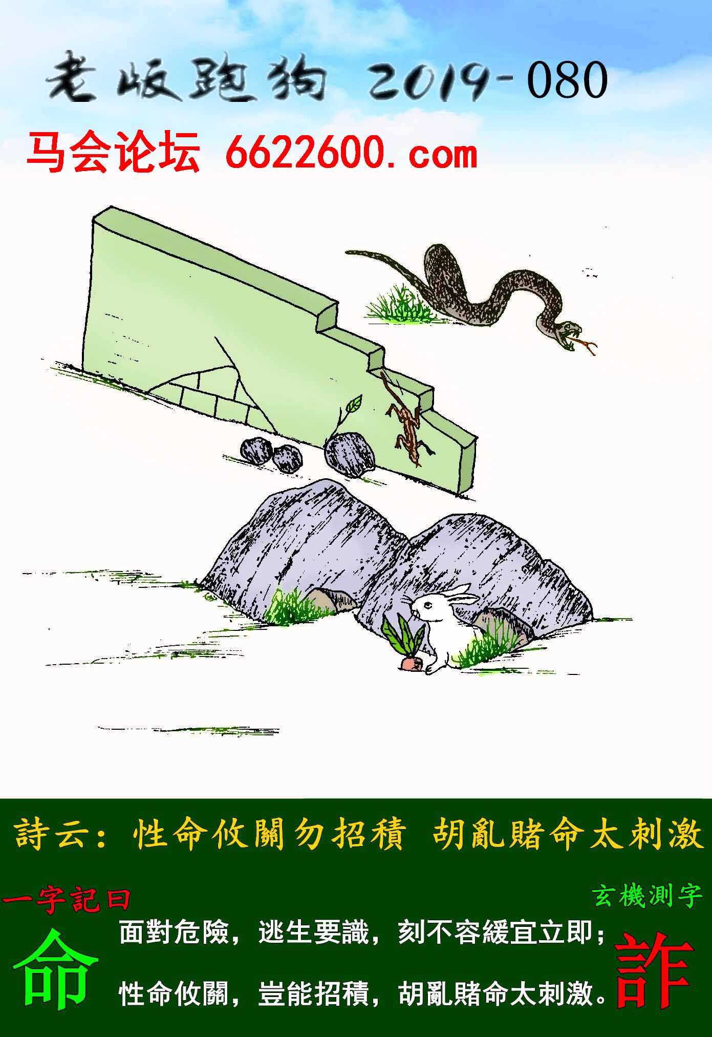 主题 : 080期:老版跑狗一字記之曰【命】玄機測字《詐》