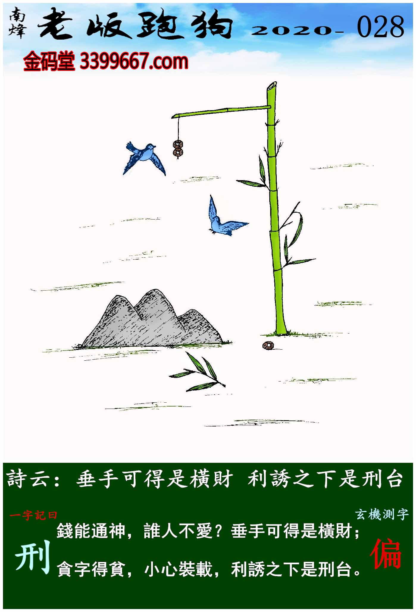 主题 : 028期老版跑狗一字記之曰:【刑】玄機測字:《偏》
