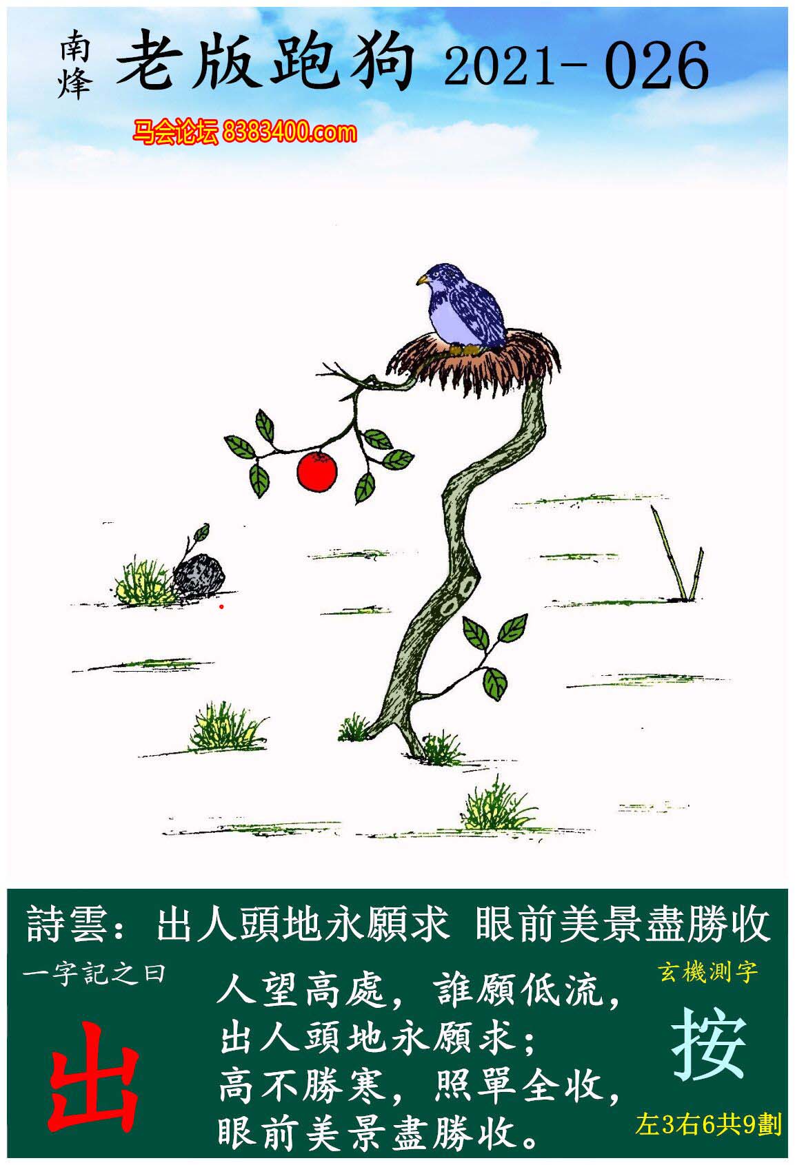 026期老版跑狗一字記之曰:【出】