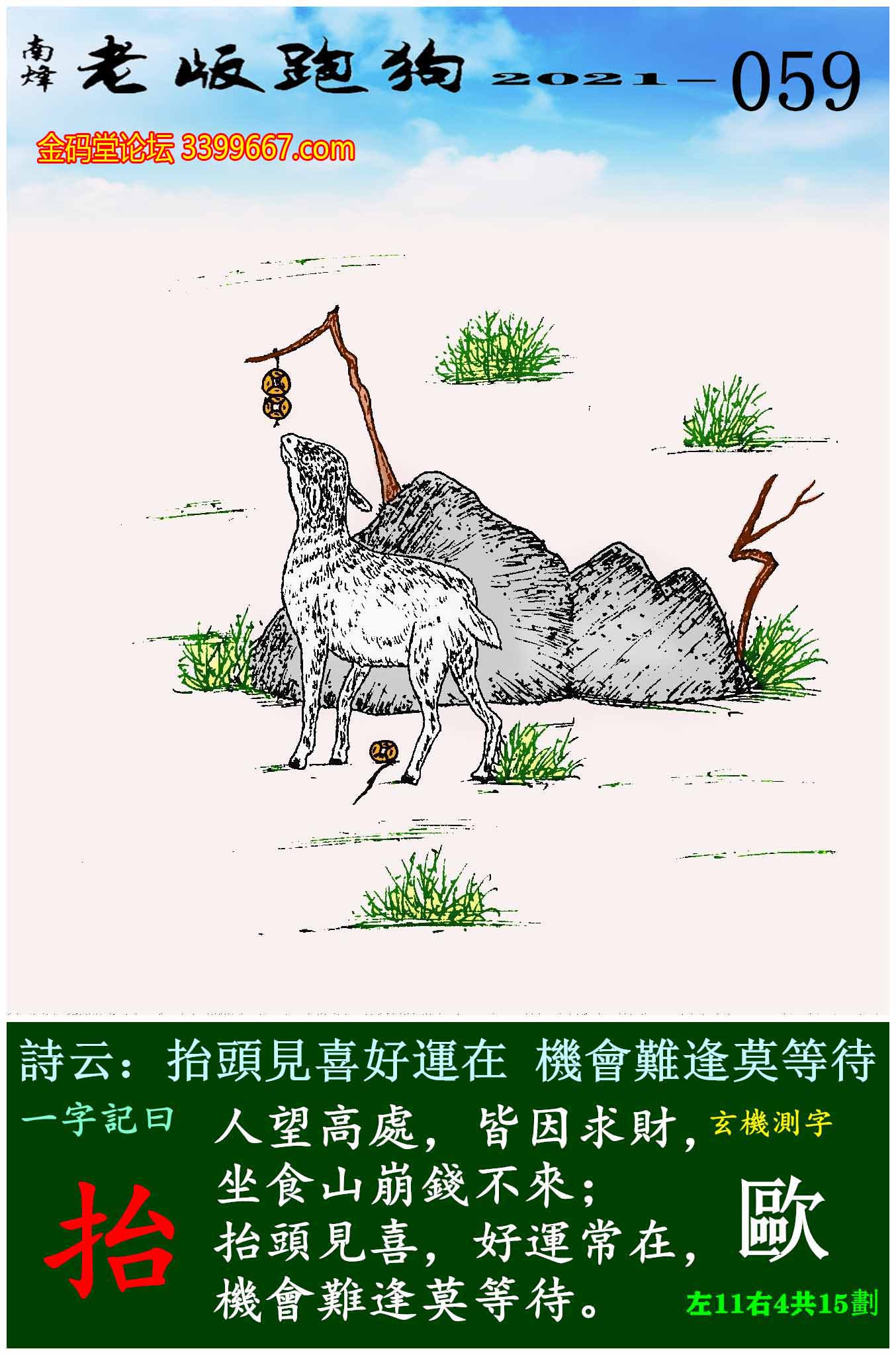 主题 : 059期老版跑狗一字記之曰:【抬】玄機測字:《歐》