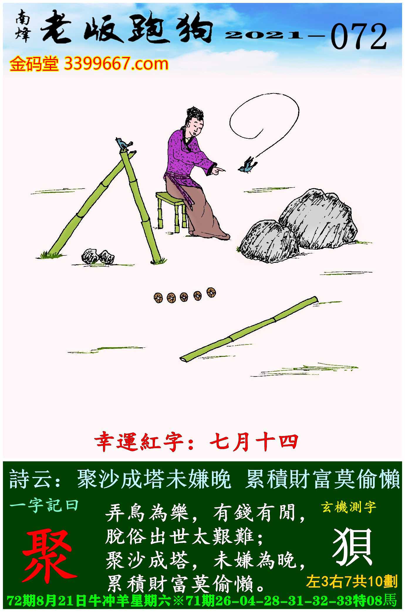 072期老版跑狗一字記之曰:【聚】玄機測字:《狽》