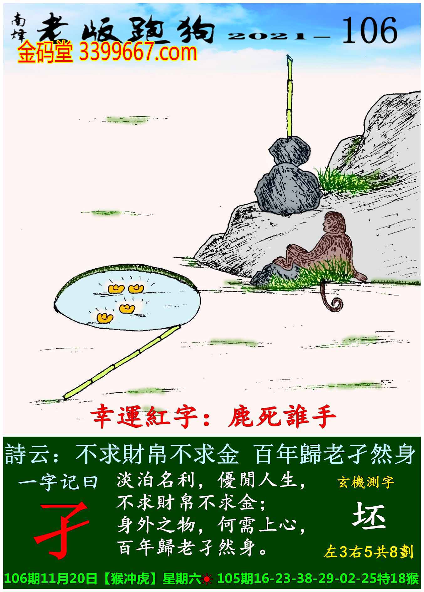 主题 : 106期老版跑狗一字記之曰:【孑】玄機測字:《坯》