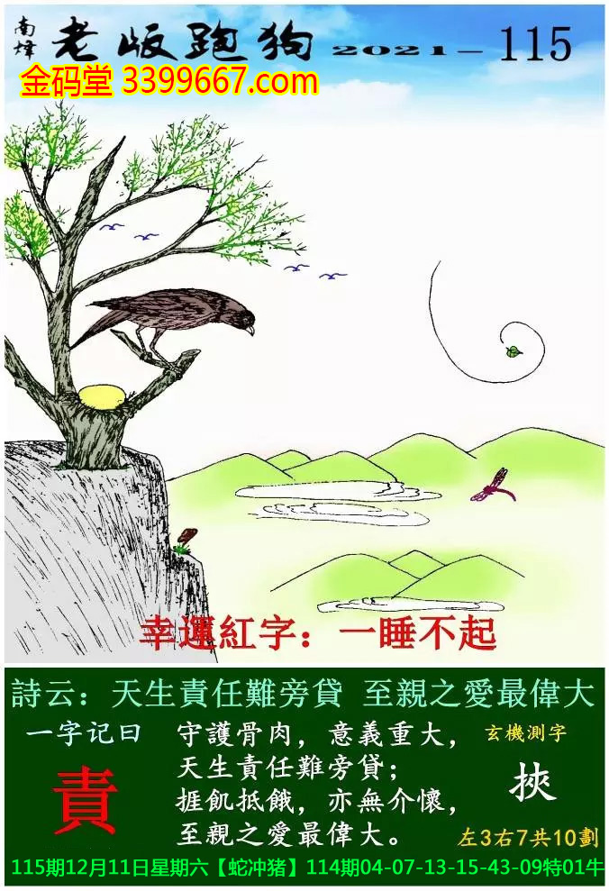 115期老版跑狗一字記之曰:【責】