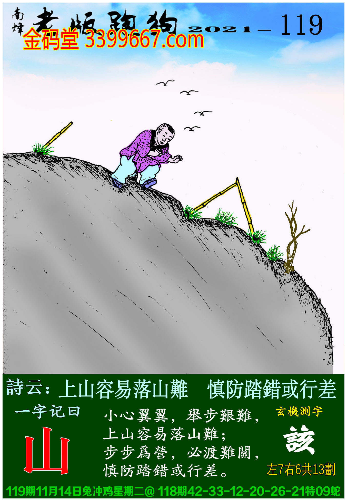 119期老版跑狗一字記之曰:【山】玄機測字:《該》
