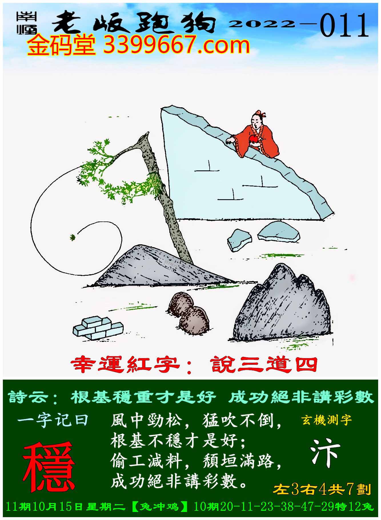 011期老版跑狗一字記之曰:【穩】玄機測字:《汴》