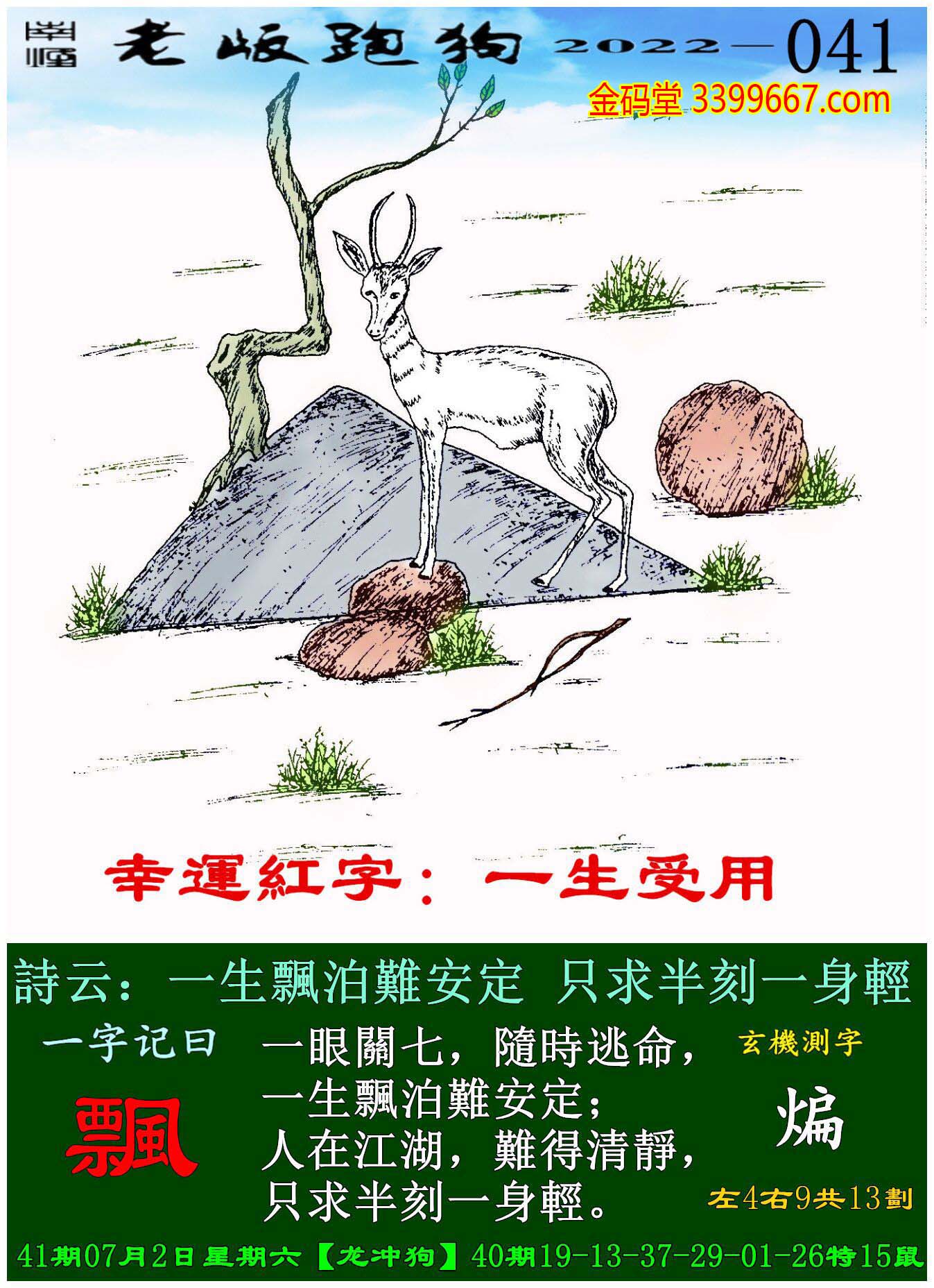 041期老版跑狗一字記之曰:【飄】玄機測字:《煸》