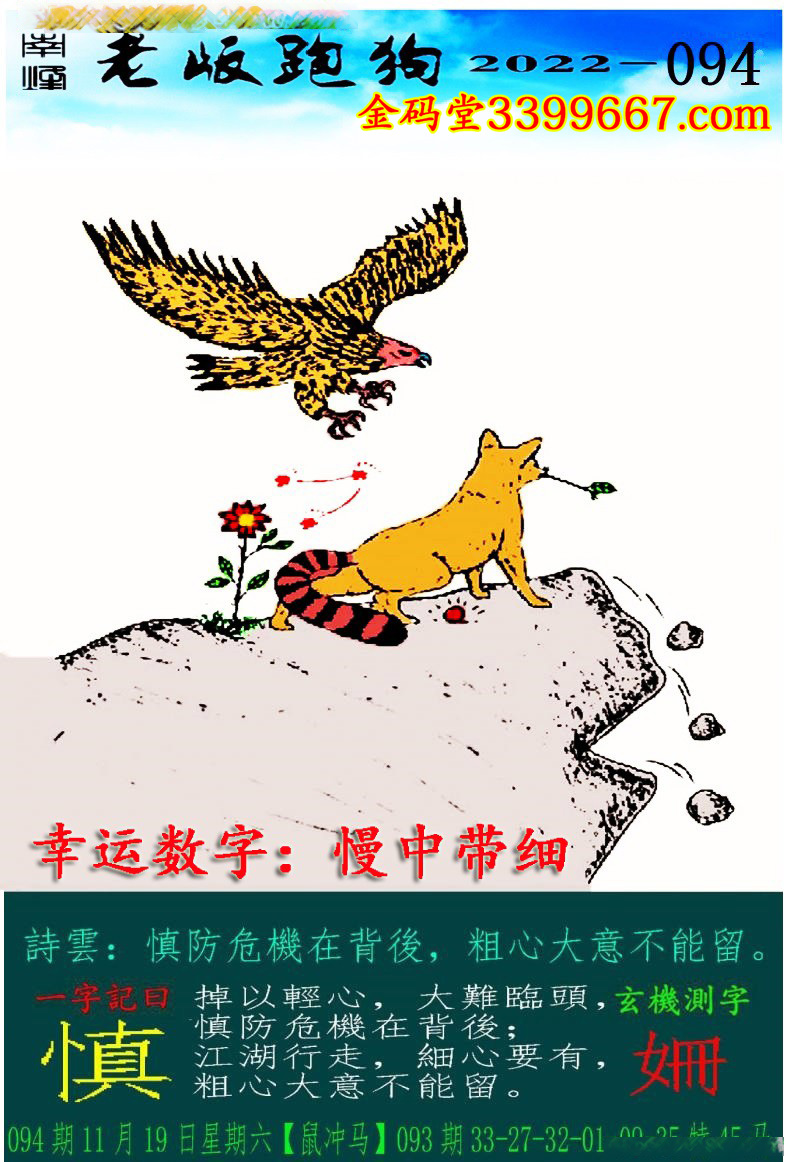 主题 : 094期老版跑狗一字記之曰:【慎】玄機測字:《姍》