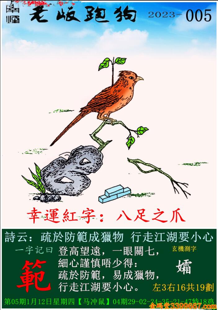 005期老版跑狗一字記之曰:【範】 玄機測字:《孀》