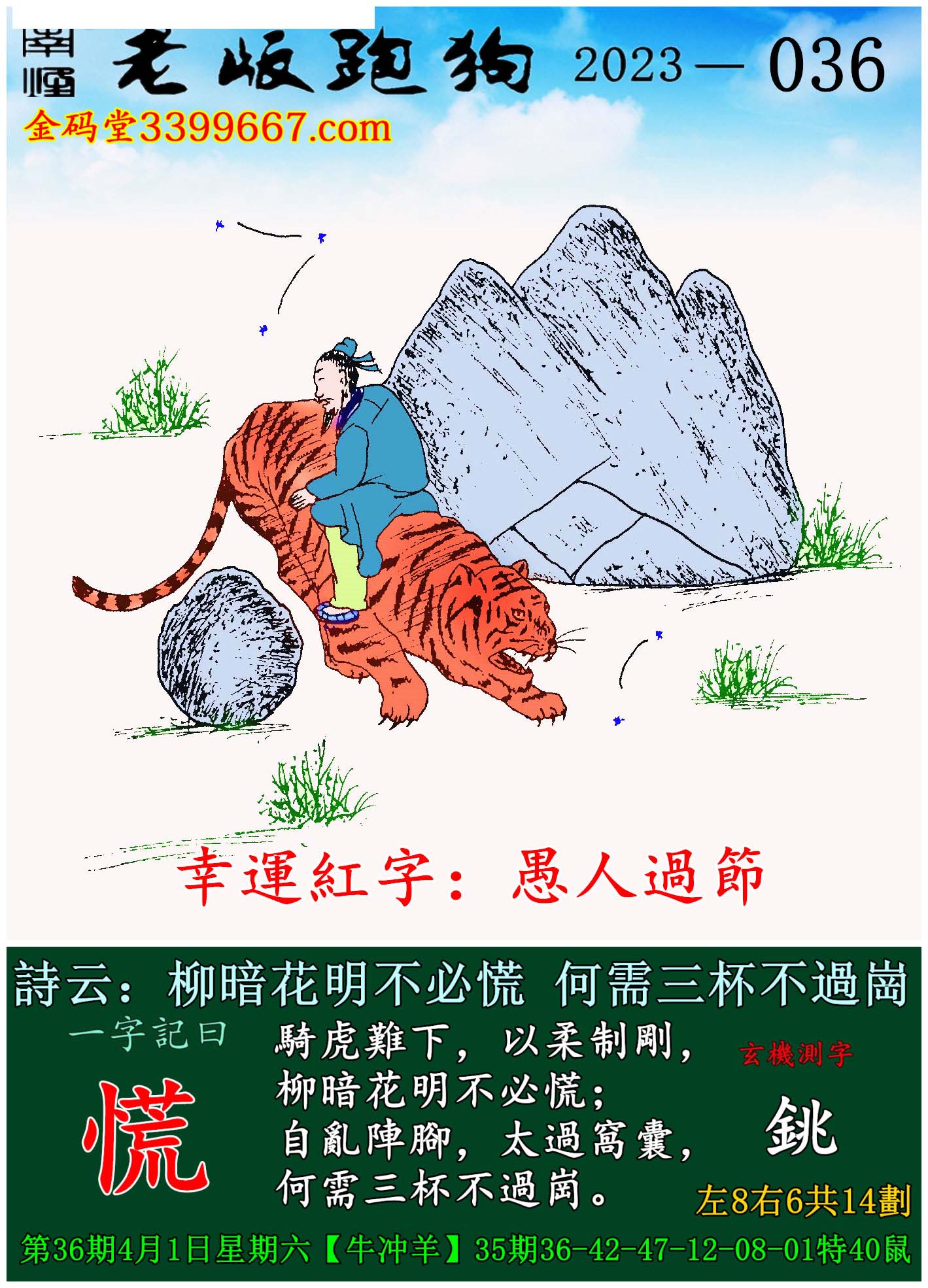 036期老版跑狗一字記之曰:【慌】