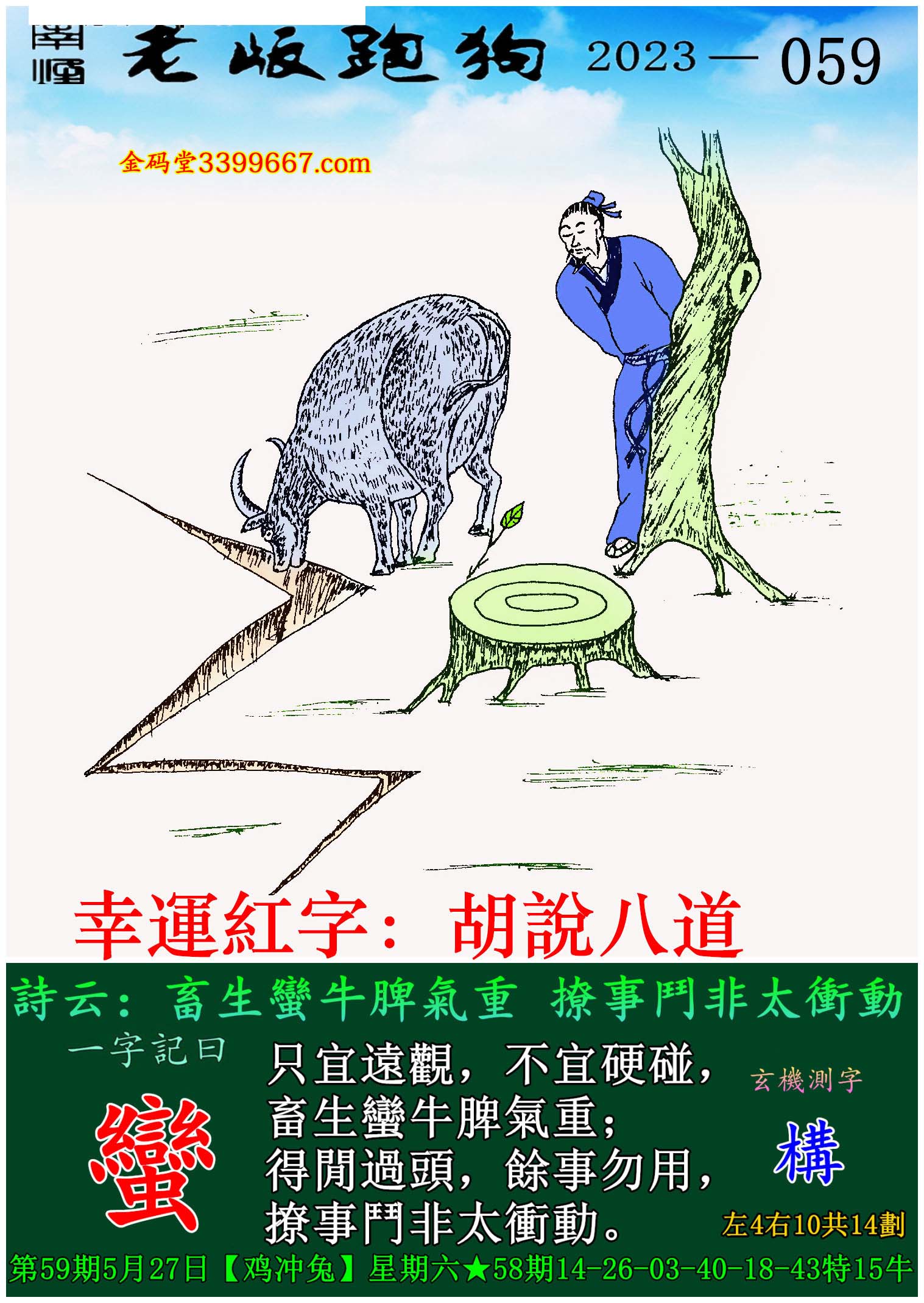 主题 : 059期老版跑狗一字記之曰:【蠻】玄機測字:《構》
