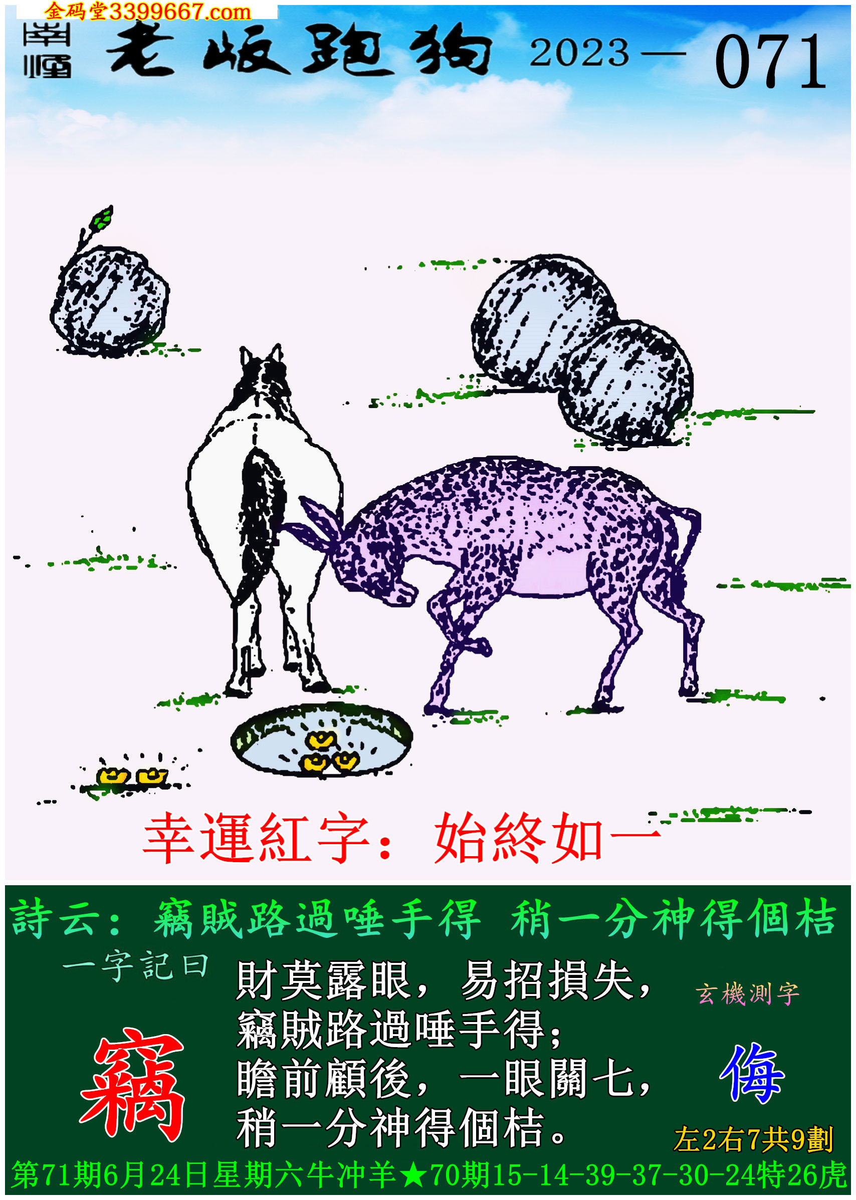 071期老版跑狗一字記之曰:【竊】