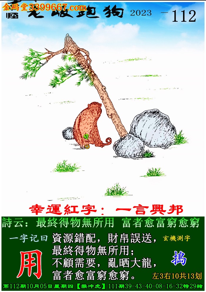 主题 : 112期老版跑狗一字記之曰:【用】 玄機測字:《搗》