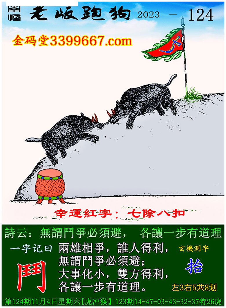 主题 : 124期老版跑狗一字記之曰:【鬥】玄機測字:《抬》