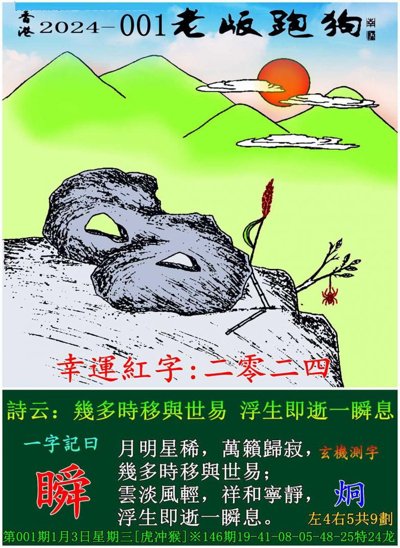 主题 : 001期老版跑狗一字記之曰:【瞬】 玄機測字:《炯》