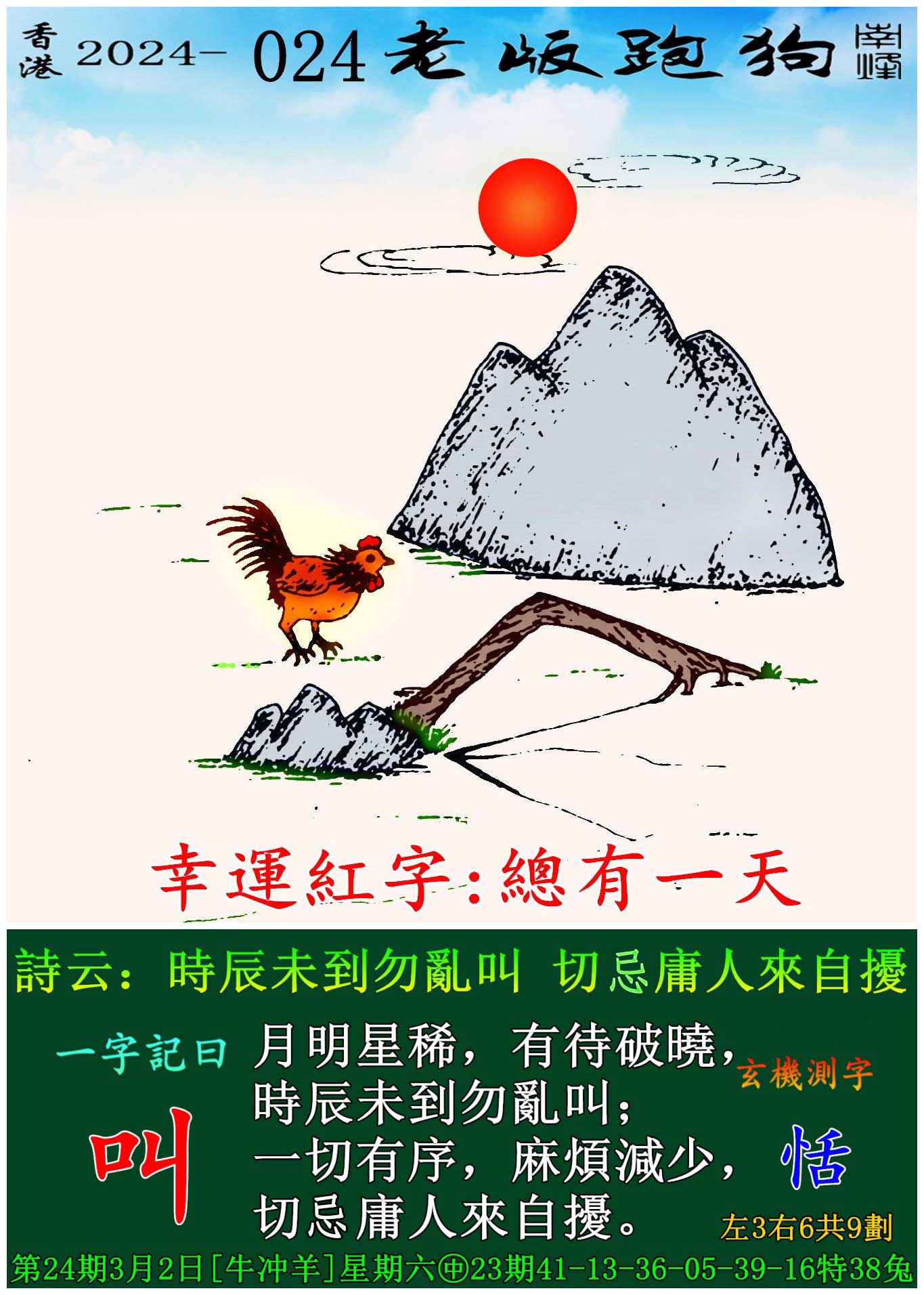 024期老版跑狗一字記之曰:【叫】 玄機測字:《恬》