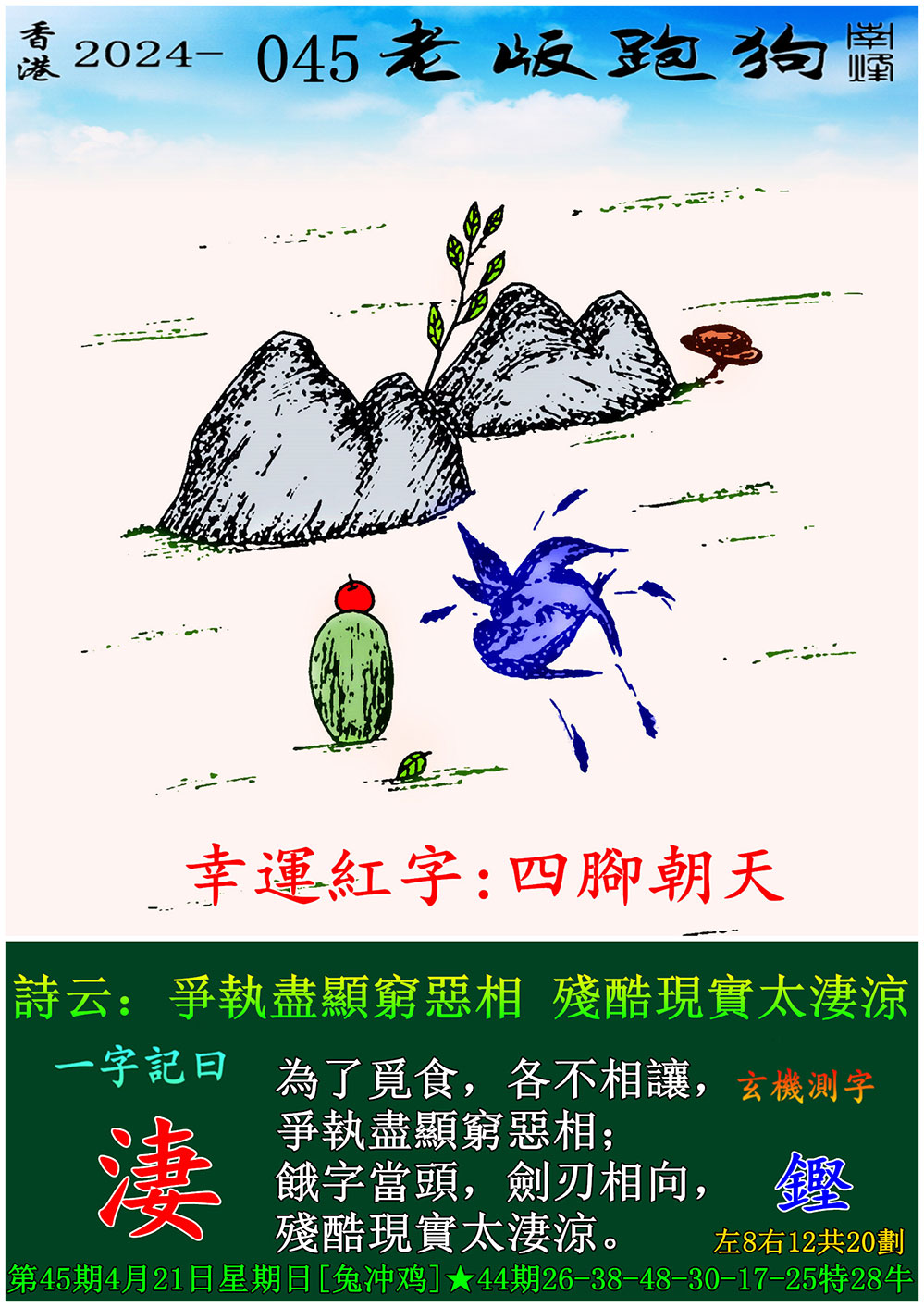 045期老版跑狗一字記之曰:【淒】 玄機測字:《鏗》