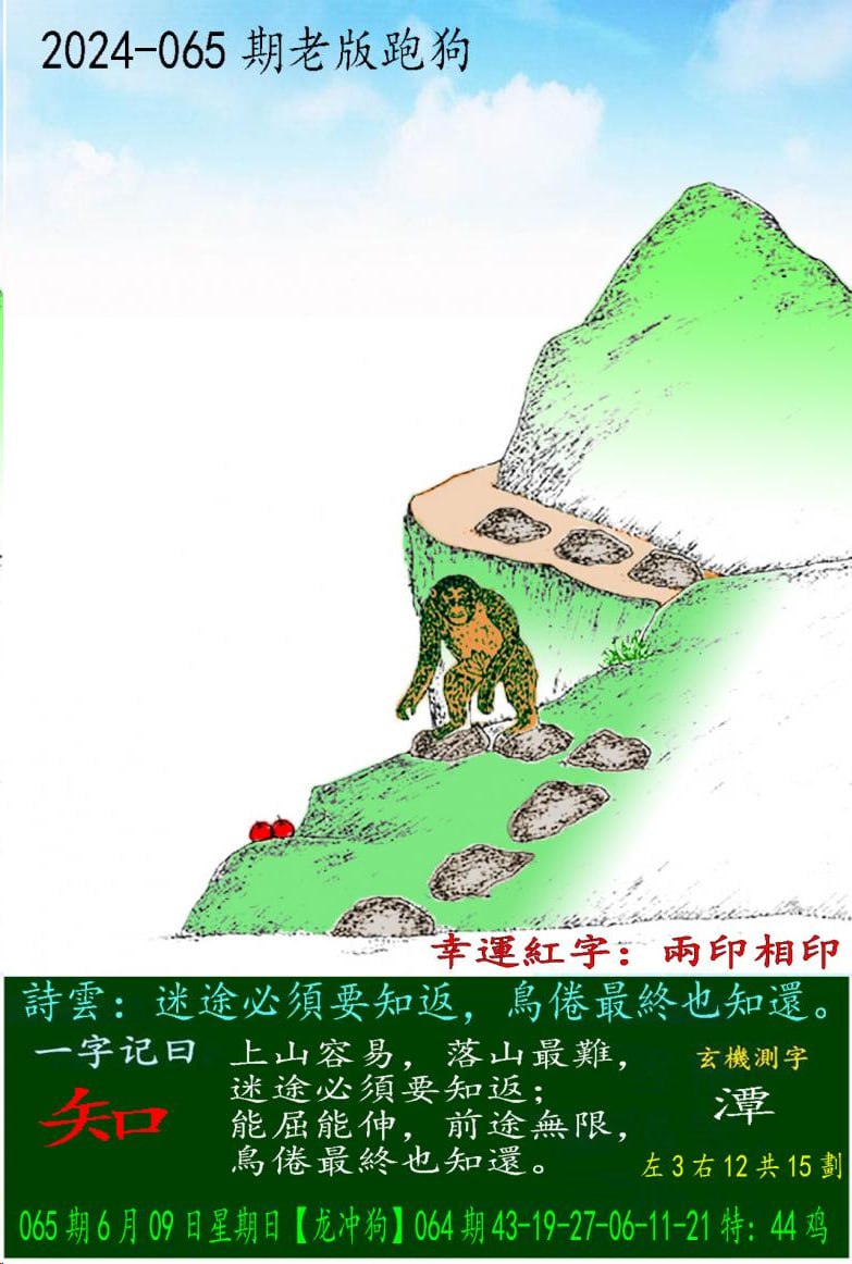 065期老版跑狗一字記之曰:【知】 玄機測字:《潭》