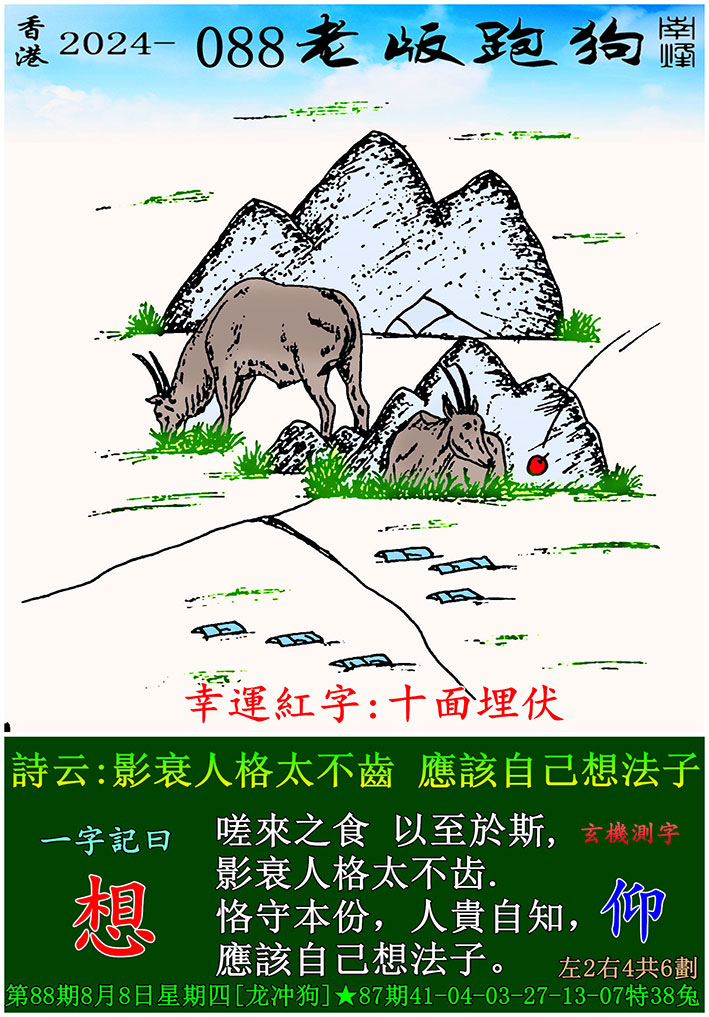 主题 : 088期老版跑狗一字記之曰:【想】 玄機測字:《仰》