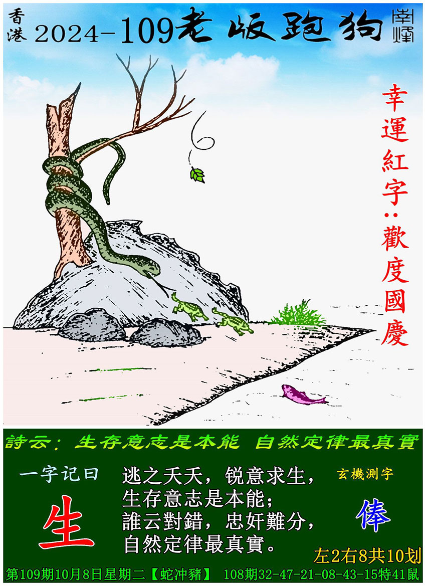 109期老版跑狗一字記之曰:【生】 玄機測字:《俸》