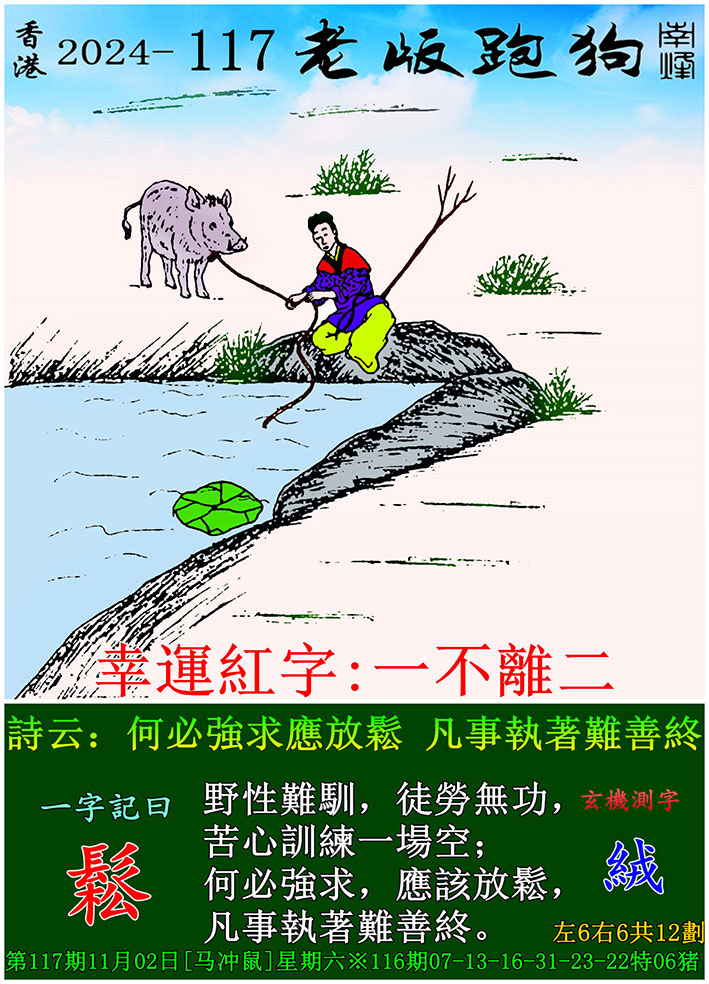 主题 : 117期老版跑狗一字記之曰:【鬆】 玄機測字:《絨》