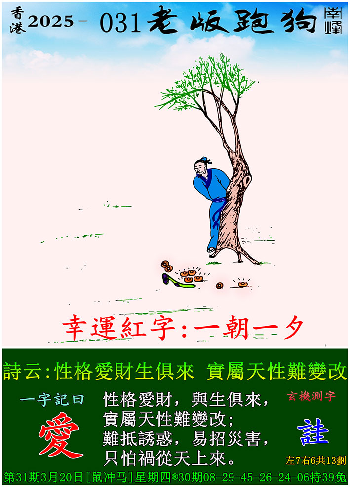 主题 : 031期老版跑狗一字記之曰:【愛】 玄機測字:《詿》