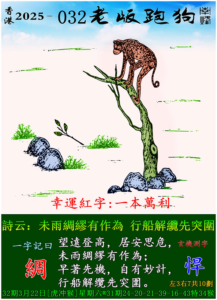 主题 : 032期老版跑狗一字記之曰:【綢】 玄機測字:《悍》