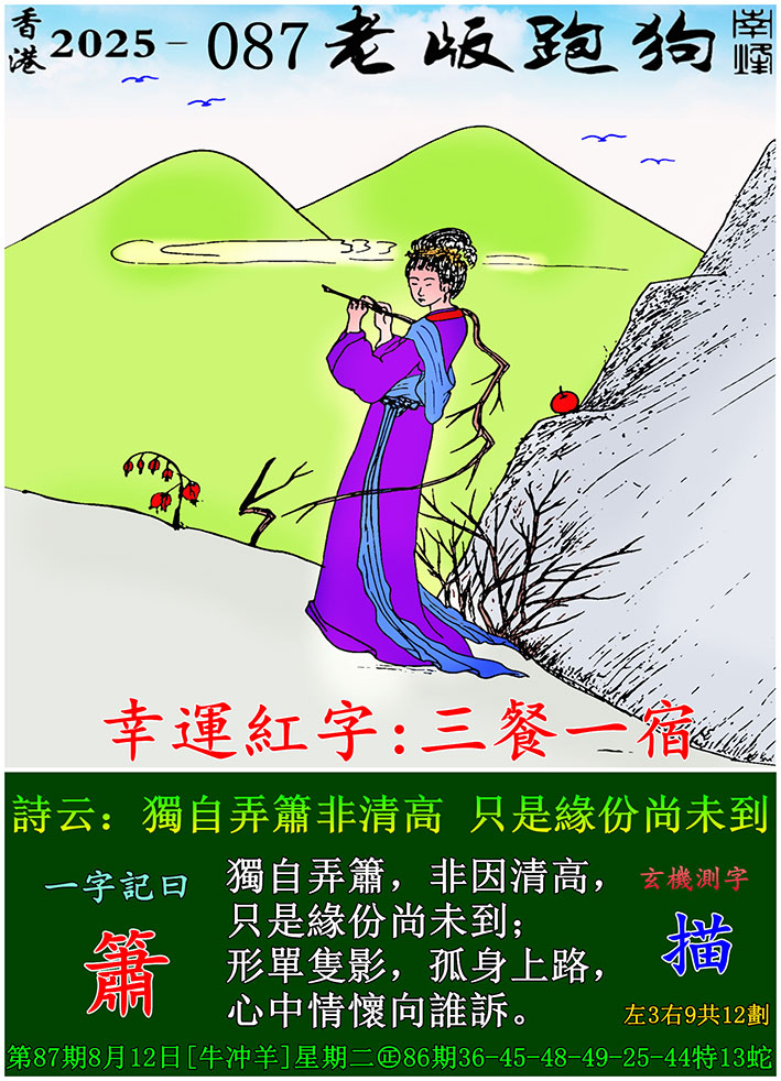 主题 : 087期老版跑狗一字記之曰:【簫】 玄機測字:《描》
