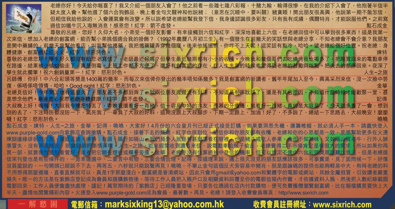 →〖點石成金〗接著下去的幾期,紅字也很到位,相信你和你朋友都有收獲,老總和你的心思都是一致,是想幫助更多在火燙煉獄邊緣徘徊的六友,重返正途。
