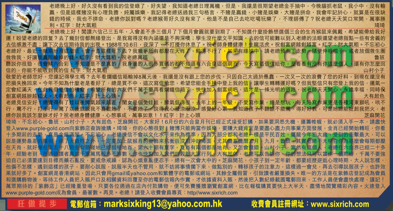 【4】 聽說你很勁,很會解六合彩,不知道是不是真的,我身邊的人很多買碼的都不知道有六合皇這個網頁,今天寫這個信給你,是看看有沒有你這麼個人,還有你怎麼回信的,你能不能收到我的信..紅字:財大氣粗 ---山村小子