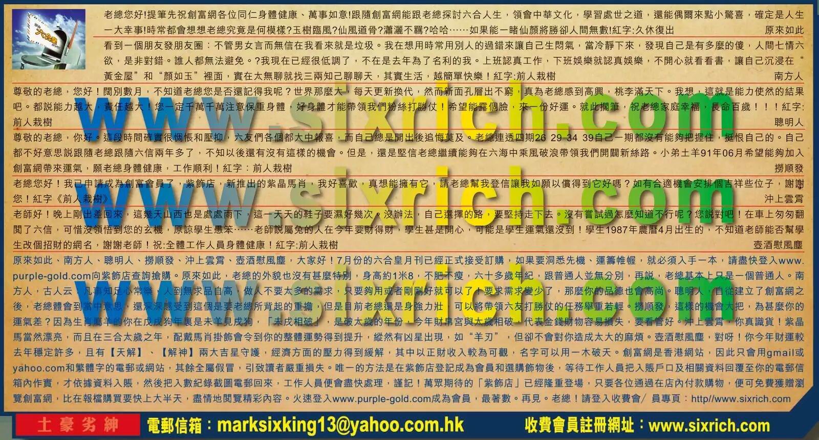【4】.尊敬的老總,你好。這段時間確實很惆悵和壓抑,六友們各個都大中報喜,而自己總是開出後追悔莫及。老總連透四期26 29 34 39自己一期都沒有能夠把握住,挺恨自己的。自己都不好意思說跟隨老總跟隨六信兩年多了,不知以後還有沒有這樣的機會。但是,還是堅信老總繼續能夠在六海中乘風破浪帶領我們開闢新絲路。小弟土羊91年06月希望能夠加入創富網帶來運氣,願老總身體健康,工作順利!紅字:前人栽樹  撈順發