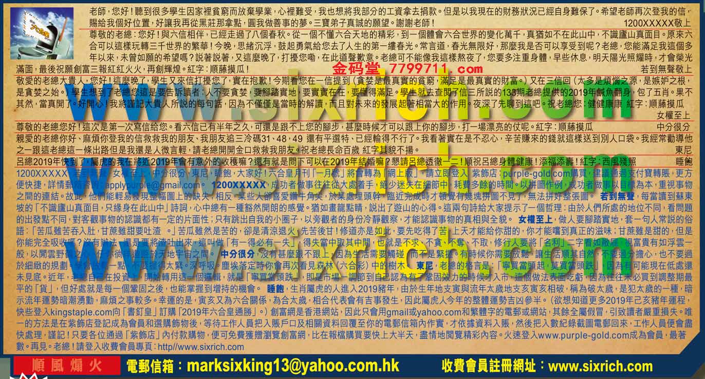 【3】敬爱的老總大贵人,您好!這麼晚了,學生又來信打擾您了,實在抱歉!今期看您在一信提到(贪婪是最真實的貧窮,满足是最真實的財富。)又在三信回(太多是煩惱之源;是嫉妒之根,是贪婪之始。)學生想到了老總您這是要告訴讀者:人不要貪婪,要腳踏實地,要實實在在,要懂得滿足。學生就去查閱了信三所說的133期老總提供的2019年鹹魚翻身,包了五肖。果不其然,當真開了。好開心!我將謹記大貴人所說的每句話,因為不僅僅是當時的解讀,而且對未來的發展起著相當大的作用。夜深了先聊到這吧。祝老總您:健健康康紅字:順藤摸瓜 ---女權至上