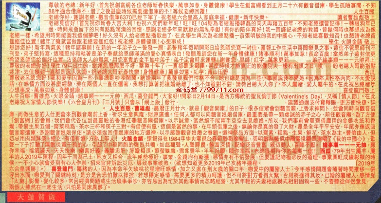【4】恩師您好!新年新氣象!豬年諸事順!在新的一年弟子立一誓發一願:起誓豬年每期開彩日給恩師您寫一封信,匯報工作生活中喜聞樂見之事。這信不管恩師刊不刊登,弟子堅持寫,适種堅持和執著是弟了奉獻給恩師滿滿的爱心真情表白!發願恩師您在新年身體健康!諸事順利!萬事如意!長命百歲!當然弟子這封信更希望恩師您給個好位置,沾恩師大人的貴氣,用您富貴的金手抽中弟子,弟子定會時來運轉!謝謝您,恩師!红字:萬象更新 弟子諸事順一一一元帥拜上