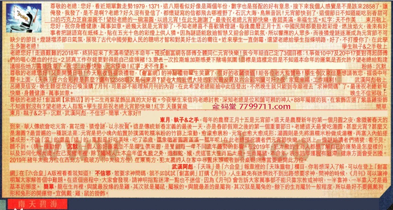 【1】尊敬的老總:您好,看近期單數走勢1979,1371,這八期看似好像是兩個年份,数字也是搭配的好有意思,接下來我個人感覺是不是該來2858了,讓俺發,我發了,是不是啊?老總?好久沒有登信了,都懷疑寫的信都飛去哪裡野了,石沉大海,鳥無音訊!元宵節快到了,這個節日不知道能吃到香甜可口的巧克力芝麻湯圓不!望盼老總的一碗湯圆;以過元宵!在此先謝謝了,最後祝老總元宵節快樂,香甜美滿,幸福生活。紅字:天不作美 ---東月敬上