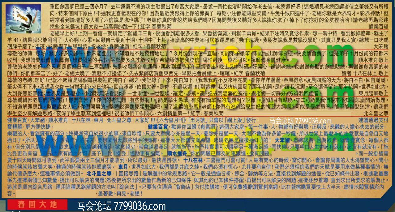 健業百貨,大笨豬。順水推舟,十八在林,東月,北斗皇之尊,大家好!! 【1】重回創富網已經三個多月了,去年運氣不濟的我主動退出了創富大家庭。最近一直忙也沒時問給你老去信,老總還好吧!這幾期見老總回讀者信之筆鋒又有所轉向,特來信問下原由!不過我更喜歡現在的你!因為最近我跟得上你的節奏了,每期小注都能賺點菜錢。牛兔牛猴四連中了,老總你就是六界奇才。彩界神話!但經常看到論壇好多人看了六信說是坑也跳了!老總你真的會挖坑給我們嗎?因為開獎後又聽好多人說掉你坑了.掉下了你挖好的金坑裡哈哈!請老總再為彩迷挖些金坑銀坑!讓大家一起高興的跳一下!紅字春蘭秋菊 ---健業百貨 →〖健業百貨〗歡迎你回歸《創富網》這個大家庭。每一件事人物都有好與壞,正與反,悲觀的人擔心失去的部分,樂觀的人,看到擁有的部分。快樂常來自於很小的事,來自珍惜。只要大家開心亦是過一天,憂愁亦是過一天,太陽不會為你多留一秒鐘,所以世界上最虧本的生意就是自怨自艾地過日子。所以大家今天不想著昨天的失去,要想著明天即將到手的擁有,這樣天天都會充滿希望,起碼老總是這樣過日子的! 【2】老總早上好!上期一看信就鎖定了猴雞羊三肖,後面看到雞很多人看,果斷捨棄雞,剩猴羊兩肖。結果下注時又貪念作祟,想一碼中特,看到猴掉赔率,就主了羊41結果就只能呵呵了人心啊心累。回顧自己最近十期,十期中了七期,這麼高的中獎率可居然還是輸了幾千塊錢。我朋友說我是數學沒學好,其實只是我太貪,總想一口吃成個胖子罷了。夜班該睡覺了先聊到這。祝老總:身體健康!紅字:春蘭秋菊 ---大笨豬 →〖大笨豬〗老總認為,因為欲念,就會變貪念,每個人都有,但分别只是多與少。欲念越多,就會越難满足,欲念越少,就會越易滿足,就能施予,施予其實是可以得到另一種滿足感,同快樂。只要明白人生中該有就有,該沒有就沒有。「施比受更為有福」就是大家有能力才可「施予」比「接受」協助更有福氣 【3】尊敬的師傅,您好,發了好多次郵件;都未能登出,不知道是不是發錯地址了? 3月份到現在一直輸可能弟子愚笨!未能悟出師傅玄機,快要續會費了,但是弟子1月份買的符都未收到.我想請問師傅!我屬狗!想買個兔的手串,平郵要多久才能收到?希望師傅把我登信.哪怕最後一位都可以。祝師傅身體健康。 ---順水推舟敬上 →〖順水推舟〗你的問題已轉交同事跟進,欲有問題 。而一般掛號需要十四天時間就可收到,而平郵要兩至三固月才能收到,所以最好最快是掛號。 【4】尊敬的老總您好,今天真是個好日子,三喜臨門,先是收到六合皇通勝,再收到福袋下午已經寄出,晚上又中特碼,好開心;謝謝老總,也謝謝創貼的創總貼總,再謝謝創富網的老師們,你們都辛苦了,好了,老總大晚了.我就不打擾您了,先去紫飾店買個東西先,早點把會員續上嘻嘻。紅字春蘭秋菊 ---讀者 十八在林上 敬上 →〖十八在林〗三喜臨門可喜可賀,人總有開心的時候,當你開心,會讓你周圍的人也渴望開心。開心的時候就該放聲大笑,難過的時候就該抱頭痛哭。 【5】尊敬的老總:您好!已記不起這是哪個電視劇裡的獨白了,總之,我記錄了下來,獨白如下:(我想我趕不及来年花開,看你洋洋灑灑!春風得意。凌晨四點的天光,將白不白,回首滿滿筆尖停不下來,我想我欠你一句對不起,來日他年,回首滿滿,依舊欠著。是你,不讓我還!!!到這裡,我又彷佛回到了那年花開,是你讓我沉澱o至今還停留在那年花開。世界如此大,大到你無影無蹤;世界又是那麼小,小到我無法看见你)。一世永恒,一世塵埃,羅定,心飛。夜,送去我温馨的祝福,祝老總一切静好,方待我回佳音。 ---東月起筆敬上 →〖東月〗世界如此大,我們都是井底之蛙。我們必須有恒心,尤其要有自信!我們必須相信我們的天賦是要用來做某種事情的,無論代價多麼大,這種事情必须做到。 【6】尊敬編輯部老師們:你們好!你們辛苦了!你們的考試題!有些難啊!可能是學生愚笨有沒有簡單點的試題啊?說難,可能题目有點繞。第二可能是我們根本不知道怎麼開始做題。不知道解題思路。整體說女人吧,你們開男的。整體說得像兕猛野獸吧,開了溫柔的小馬。老師!你們有沒有給學生好的複習大網啊?可能是學生愚笨。能不能指點迷津,讓我們學生至少有解題思路。夜深了學生就寫到這裡吧!祝老師們工作順心,六創銷量第一!紅字:春蘭秋菊 ---北斗皇之尊 →〖北斗皇之尊〗「直接思路」是解題中的常規思路。它一般是通過分析、綜合、歸納等方法,直接找到解題的途徑。從已知條件出發,根據數量關係先選擇兩個已知數量,提出可以解決的問題;然後把所求出的數量作為新的已知條件,與其他的已知條件搭配,再提出可以解決的問題;這樣逐步推導.直到求出所要求的解為止。這就是順向綜合思路,運用這種思路解題的方法叫「綜合法」。