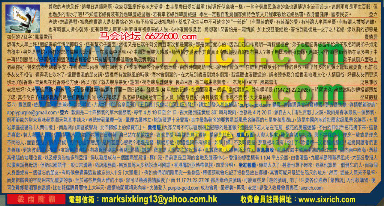 主题 : 047期:六合皇红字【穀雨斷霜】暗码《17 23 31 43》