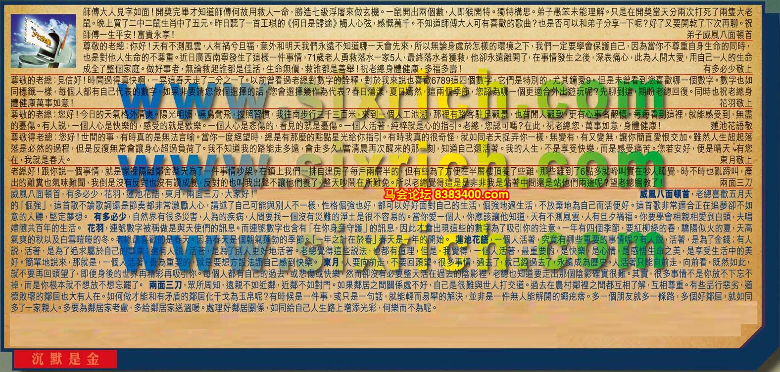 主题 : 024期:六合皇红字【沉默是金】暗码《03 12 38 39》