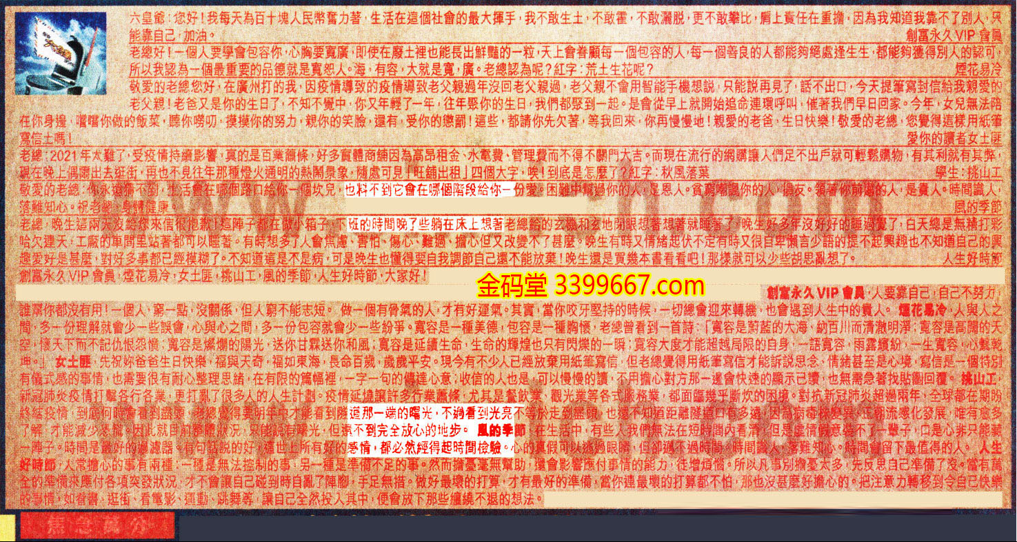 【6】.老縂,晚生這兩天沒給您來信很抱歉!這陣子都在做小箱子,下班的時間晚了些躺在床上想著老總给的玄機和玄地閉眼想著想著就睡著了,晚生好多年沒好好的睡過覺了,白天總是無精打彩哈欠連天,工廠的車間里站著都可以睡著。有時想多了人會焦慮、害怕、傷心、難過、擔心但又改變不了甚麼。晚生有時又情緒起伏不定有時又很自卑懶言少語的提不起興趣也不知道自己的興趣爱好是甚麼,對好多事都已經模糊了。不知道這是不是病,可是晚生也懂得要自我調節自己還不能放棄!晚生還是買幾本書看看吧!那樣就可以少些胡思亂想了。  人生好時節