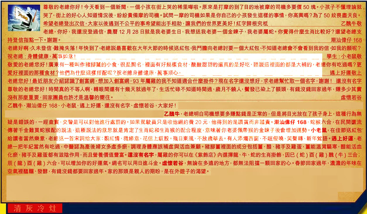 乙醜牛、潮汕偉仔168、小老鼠、遇上好運、還沒有名字、虛懷若谷,大家好!
