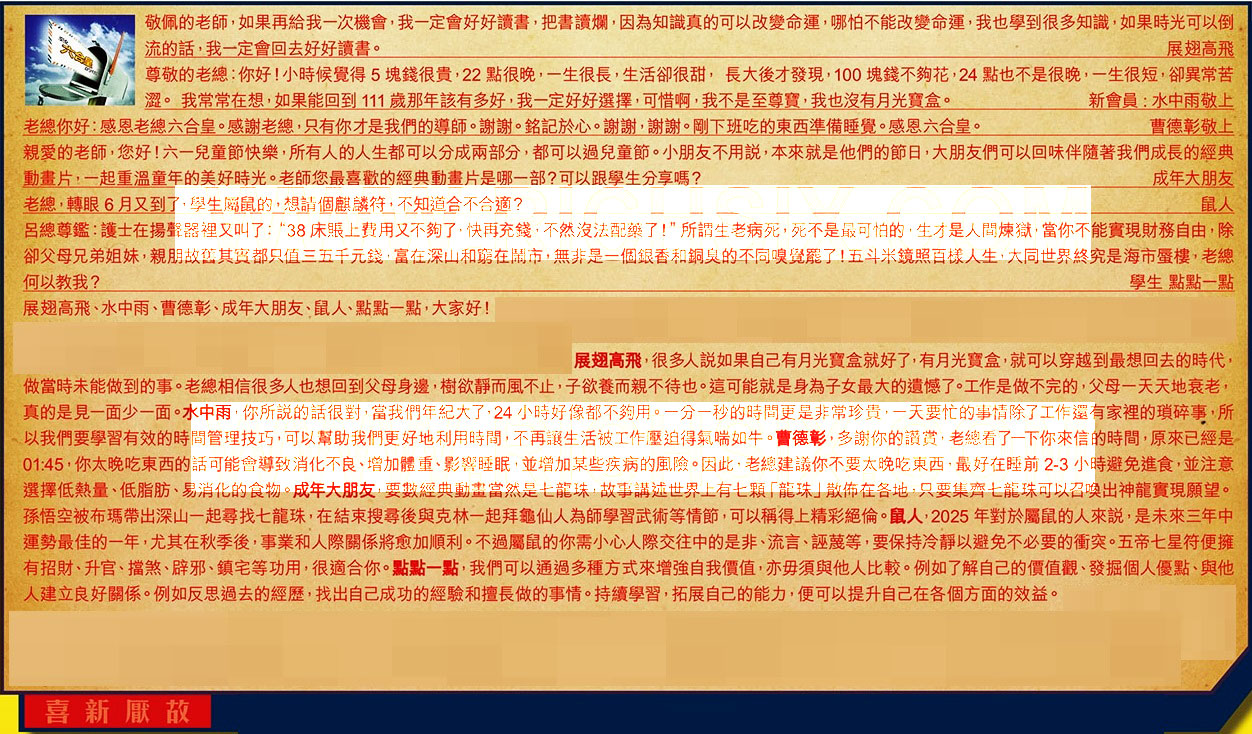 展翅高飛、水中雨、曹德彰、成年大朋友、鼠人、點點一點,大家好!