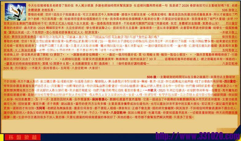 【1】.今天在信箱裡看見老總登了我的信 本人萬分感激 多謝老總抽時間來幫我算卦 在這裡抖膽再問老總一句 我是過了2026春節後就可以主動破財嗎?祝:老總身體健康 老樹長青。 506後敬上