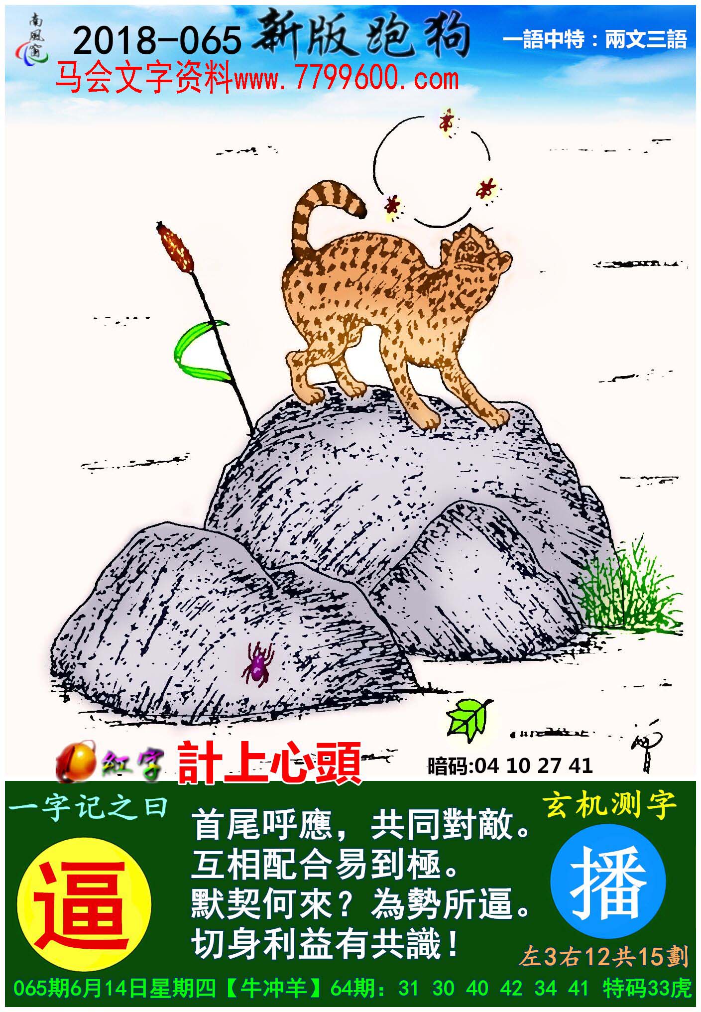 主题 : 065期:新版跑狗一字記之曰【逼】玄機測字《播》
