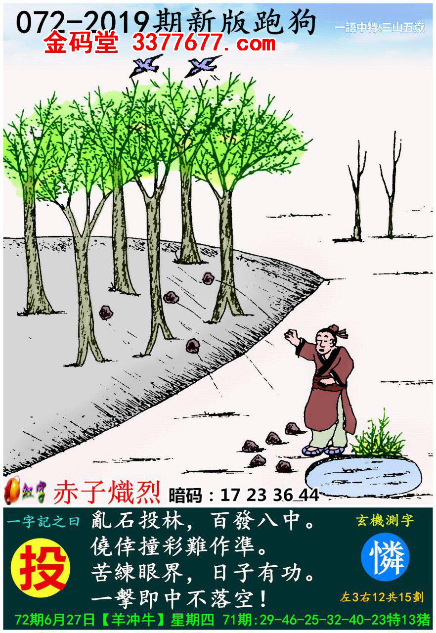 主题 : 072期:新版跑狗一字記之曰【投】玄機測字:《憐》