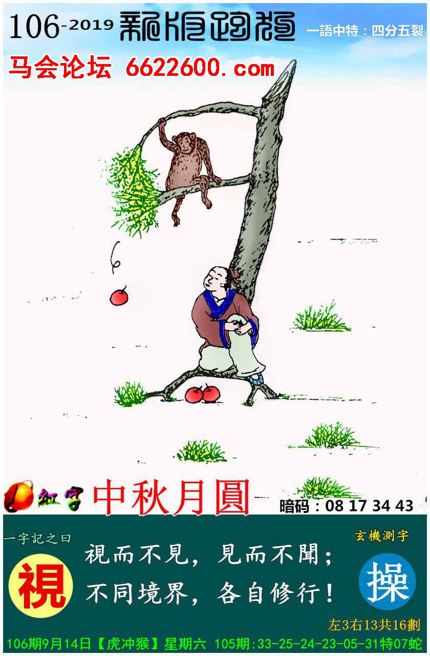 主题 : 106期新版跑狗一字記之曰:【視】