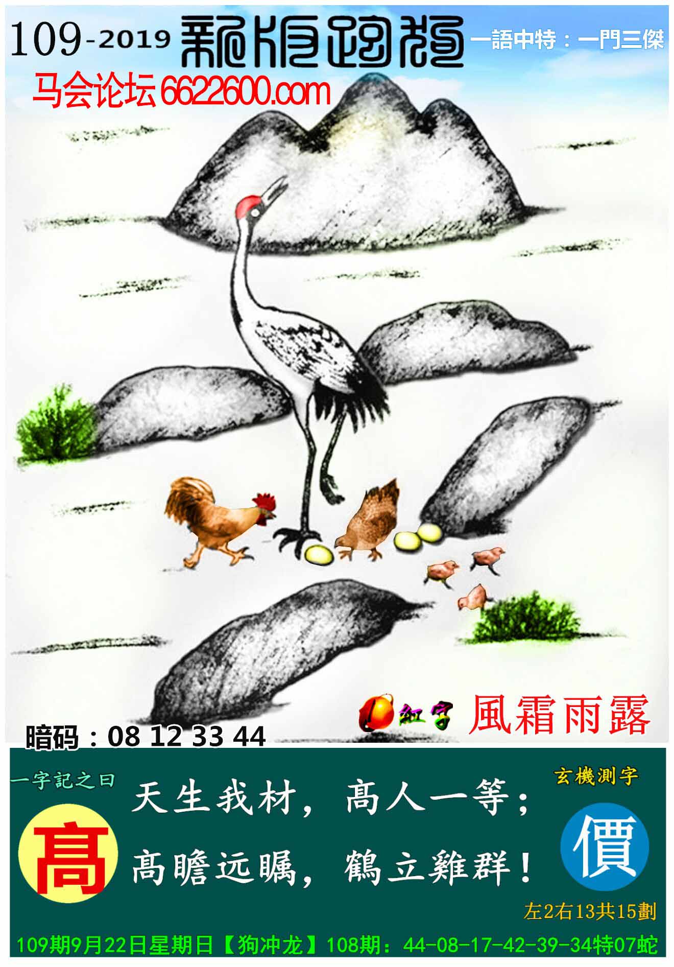 主题 : 109期:新版跑狗一字記之曰【高】玄機測字:《價》